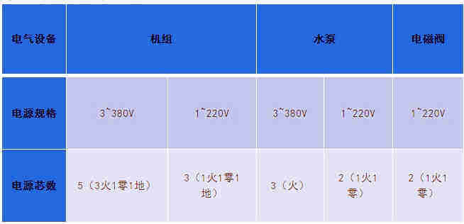 常用設備電源芯數