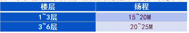 含回水系統的熱水管路,揚程根據樓層來確定,詳見下表